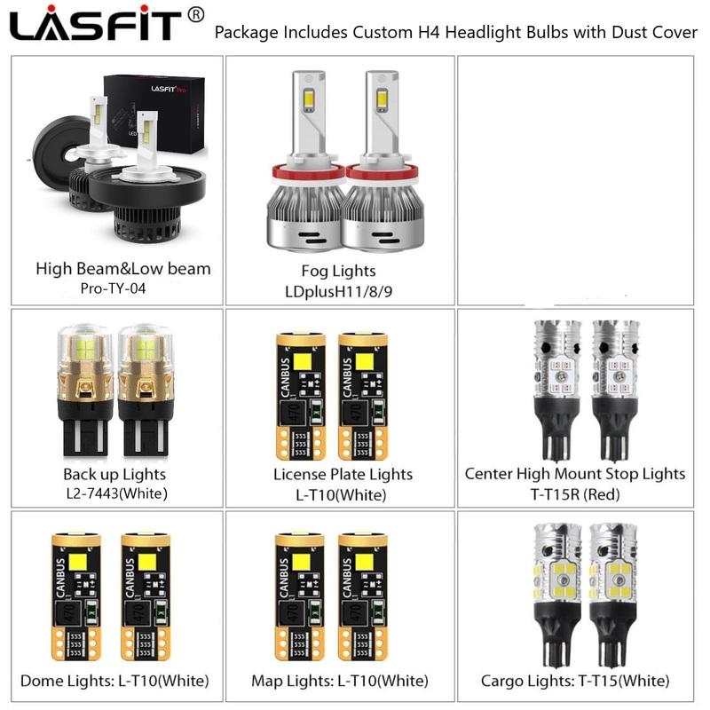 Compatible Vehicle: Fit for 2014 2015 2016 2017 2018 2019 2020 2021 Toyota Tundra1> 9003/ H4/ HB2 LED Bulbs:Pro-DC series, 100W/set, 10000LM/set, 6000K bright white, 2 bulbs in total.Unlike regular H4/9003 LED bulbs that don't fit the OEM dust cover, this
