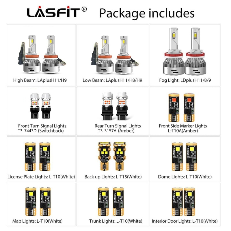 H11/ H8/ H9 LED Regular & Bright Light Bulbs: LA plus series60W/set,6000LM/set, 6000K bright white.