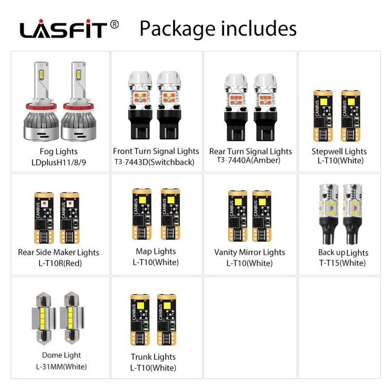 Lasfit T series T15/921 LED bulbs are new version bulbs with CANBUS support system, 3000LM, 6000K pure clean white light output.Plug and play installation.